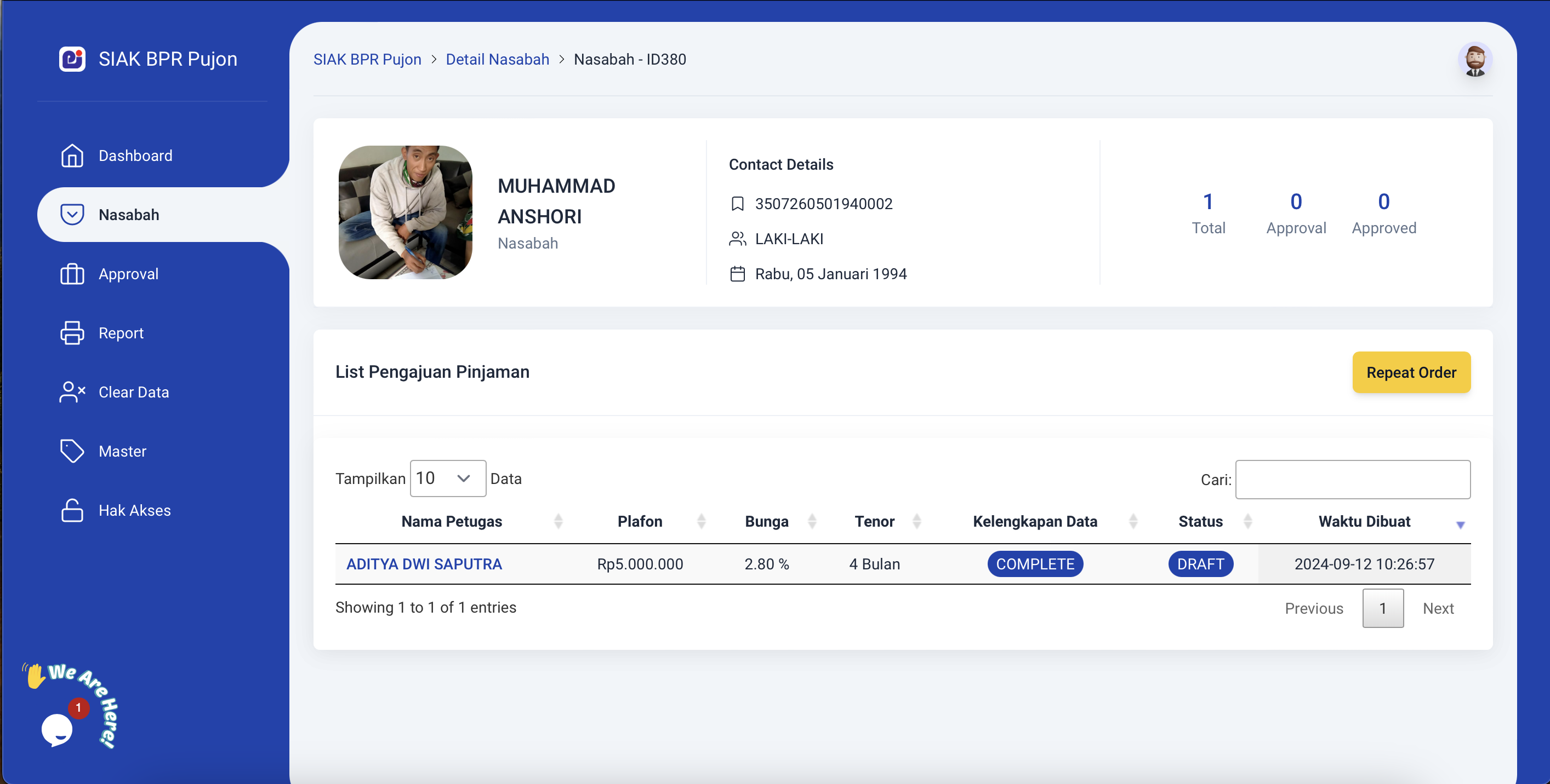 - Penghitungan RPC, Hasil SLIK, Approval analisa kredit.